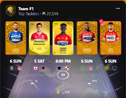 Daarnaast heb ik twee teams samengesteld voor de Top Tacklers competitie. Hier draait alles om tackles en intercepties, die maar liefst drie keer zoveel punten opleveren. Ik ben vooral benieuwd naar de prestaties van Silva en Radovanovic.