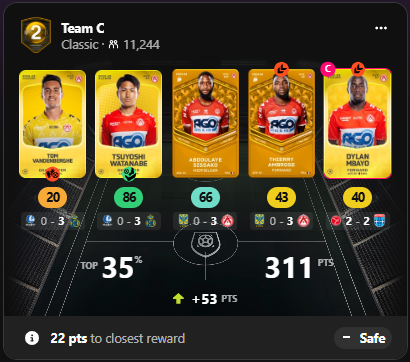 In de Cap 230 competitie, waar ik op underdog spelers inzette, was het ondanks een doelpunt van Ferri net niet genoeg. We strandden op 47 punten van de winnaar.